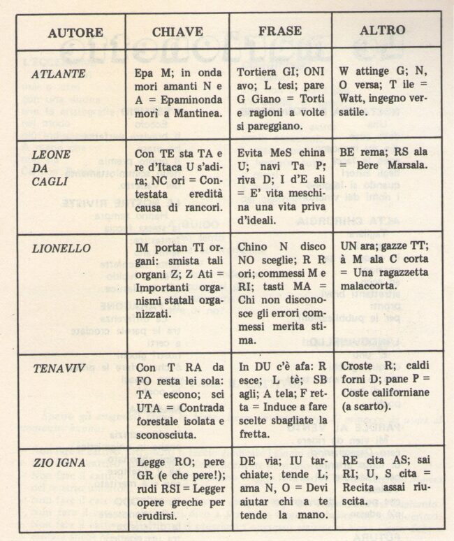 Ma bocciare i rebus della prima colonna per la presenza, rispettivamente, di EPA, ORI, ATI, SCI, LEGGE e RUDI, ignorando che tramite il loro utilizzo si è riusciti a “piazzare” chiavi stupende, non sarebbe da ottusi?